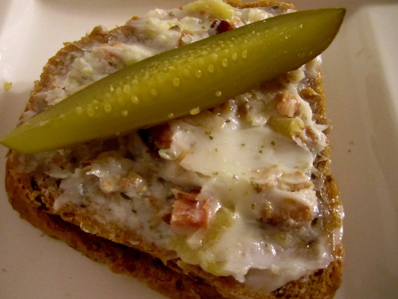 lard with onions, marjoram and sometimes accompanied with apples or prunes. Usually served as an appetizer with bread and pickled cucumbers |